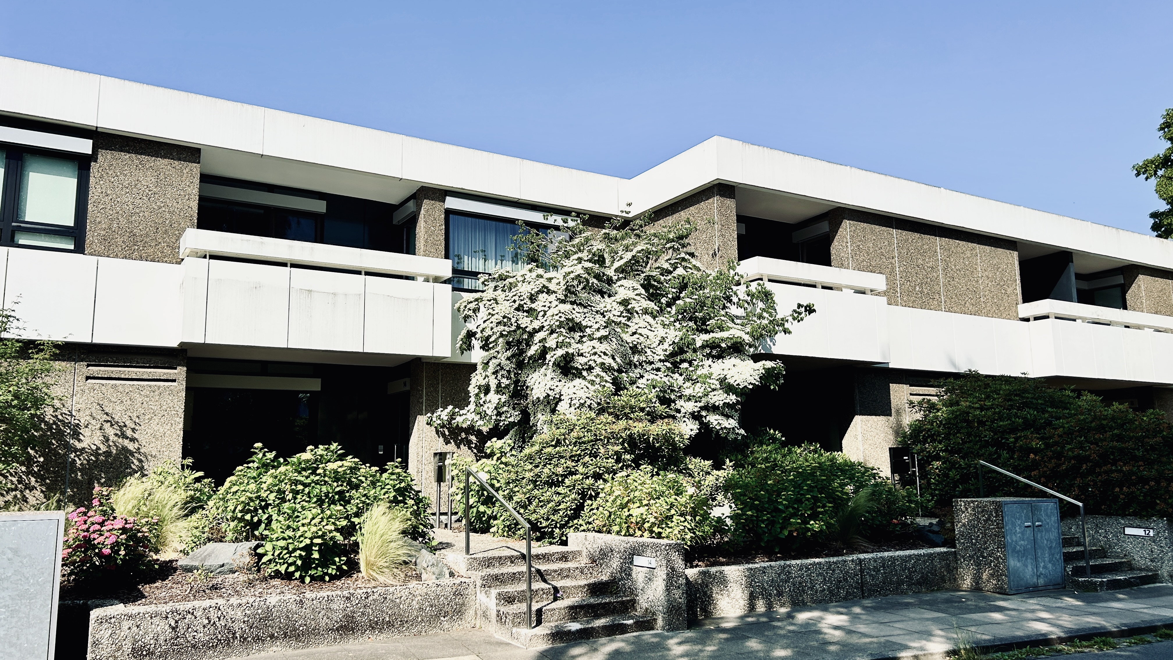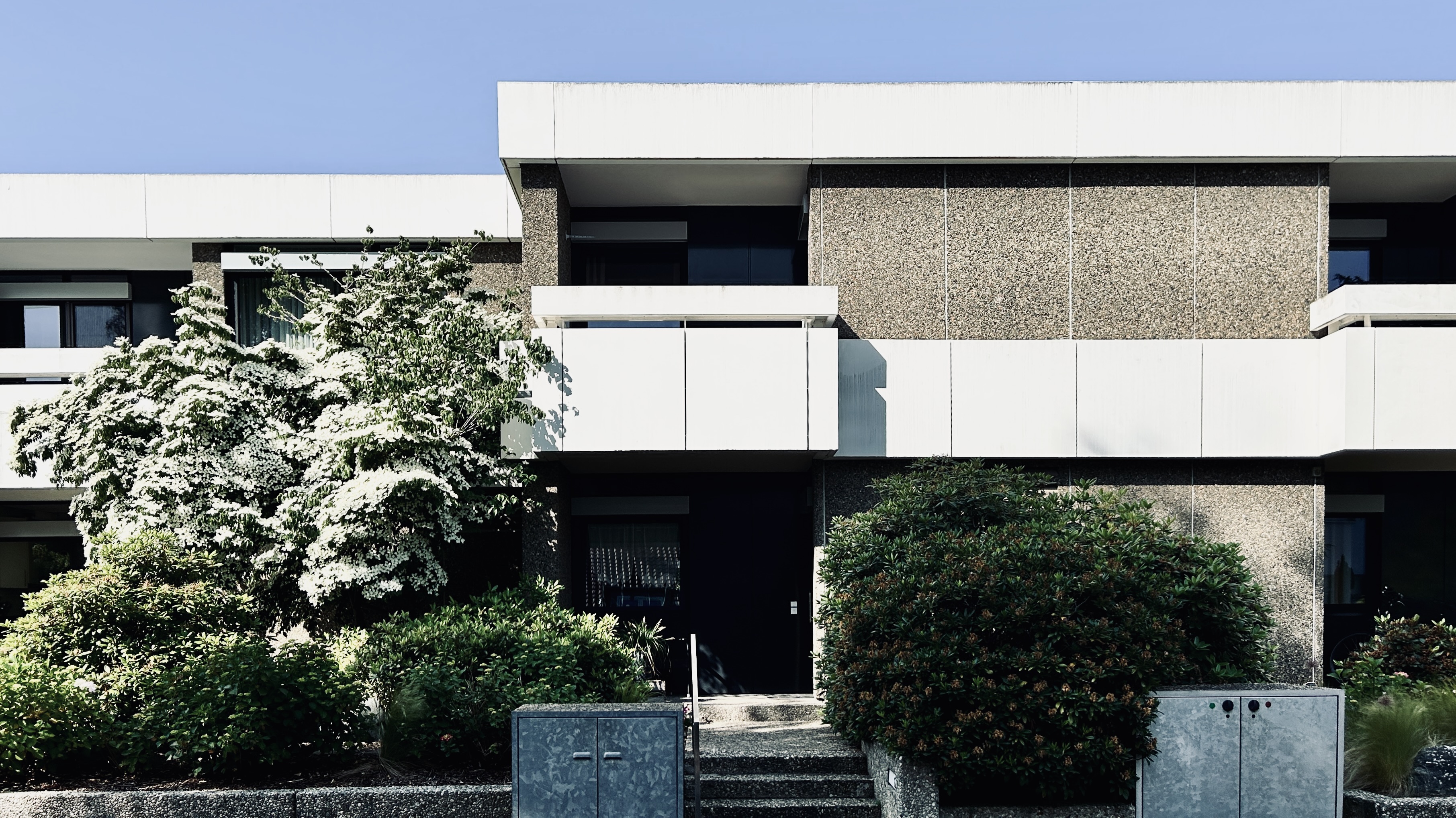 Ja, ich weiß. Gebäudeecken vor blauem Himmel sind ein totales Fotografen-Klischee, aber was soll ich denn machen? Mich faszinieren weiße Gebäude und Winkel. Und die Architektur der späten 60er und frühen 70er Jahre. In diesem Fall das Gebäude an der Kastanienallee 35 von Dieter Oesterlen, der gefühlt ganz Hannover alleine entworfen und zugebaut hat.